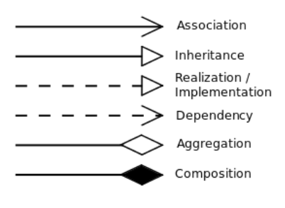 - UML(Unified Modeling Language)에는 클래스 다이어그램의 관계 중